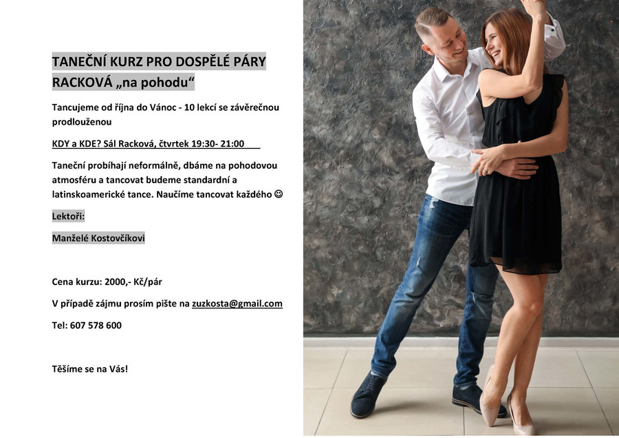 TANEČNÍ KURZ PRO DOSPĚLÉ PÁRY RACKOVÁ „na pohodu“
